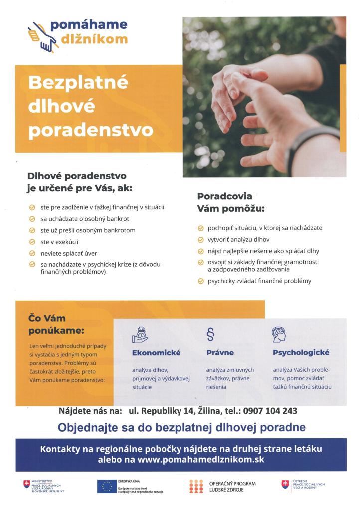 Bezplatná dlhová poradňa vám ponúkne ekonomické, právne a psychologické poradenstvo. Poradcovia vám pomôžu: