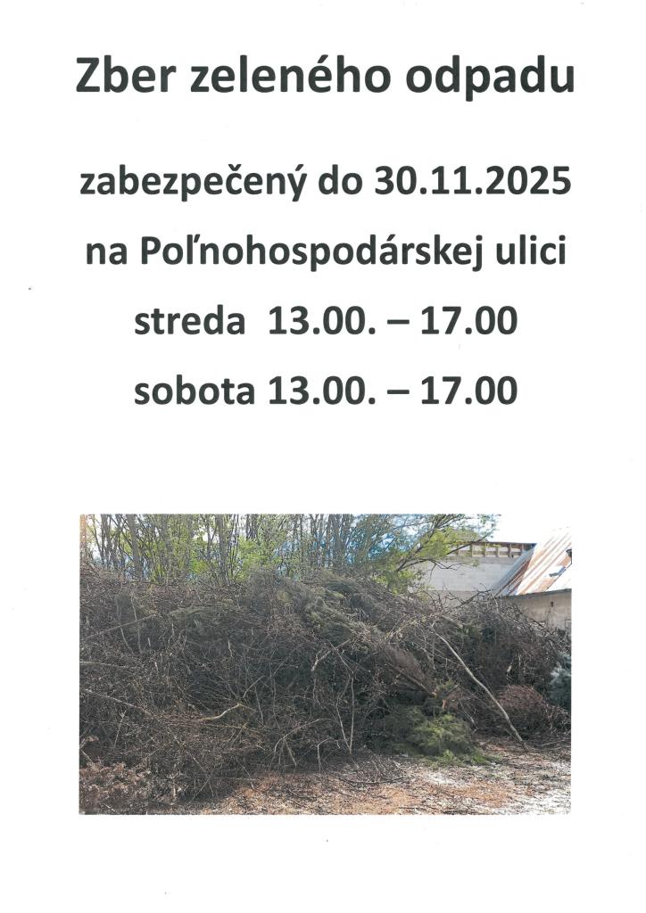 Vážení spoluobčania, zber zeleného odpadu v našej obci je zabezpečený do 30.11.2025.