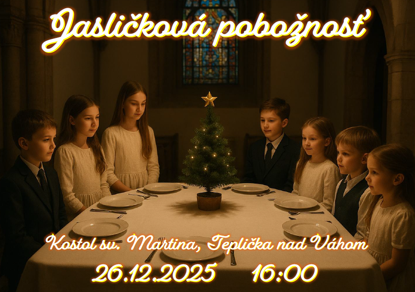 Milí občania, milé deti, pozývame vás na Jasličkovú pobožnosť, ktorá sa uskutoční 26. decembra 2025 (piatok) o 16:00 hod. v Kostole sv. Martina v Tepličke nad Váhom. Všetci ste srdečne pozvaní!