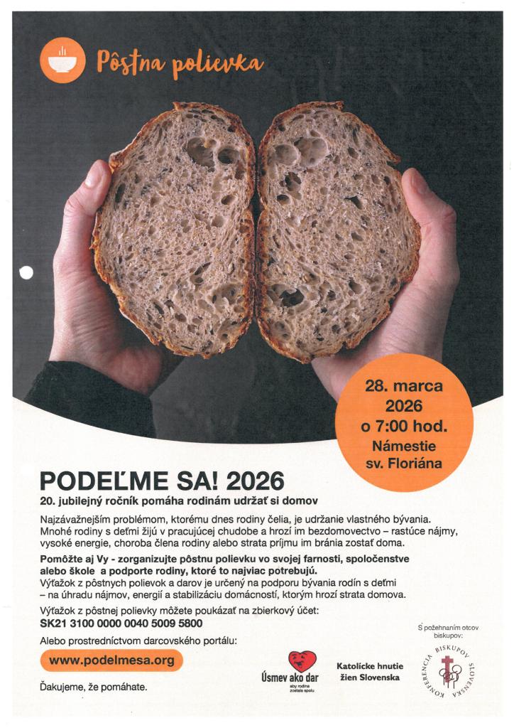 V sobotu, 28. marca 2026 sa na Námestí sv. Floriána uskutočnila pôstna akcia "Podeľme sa".