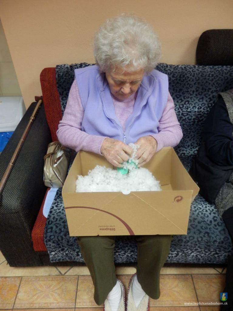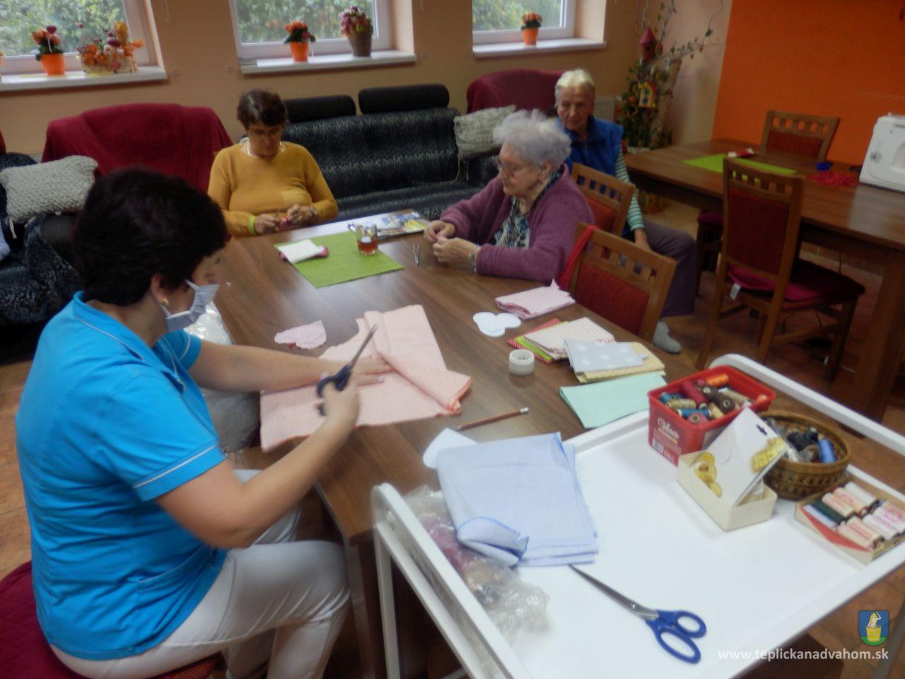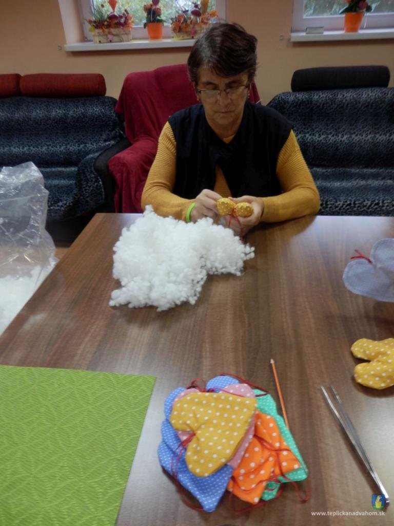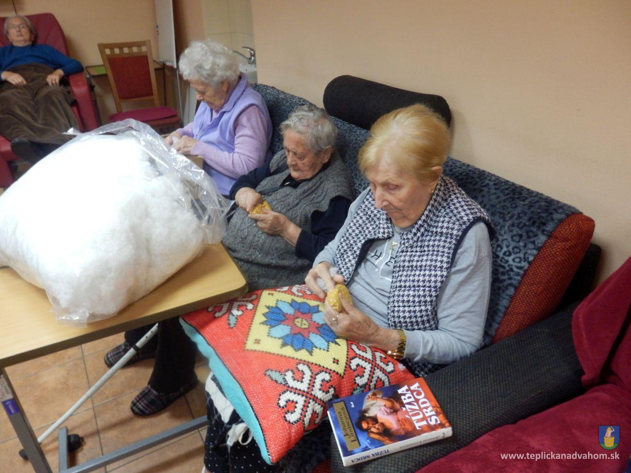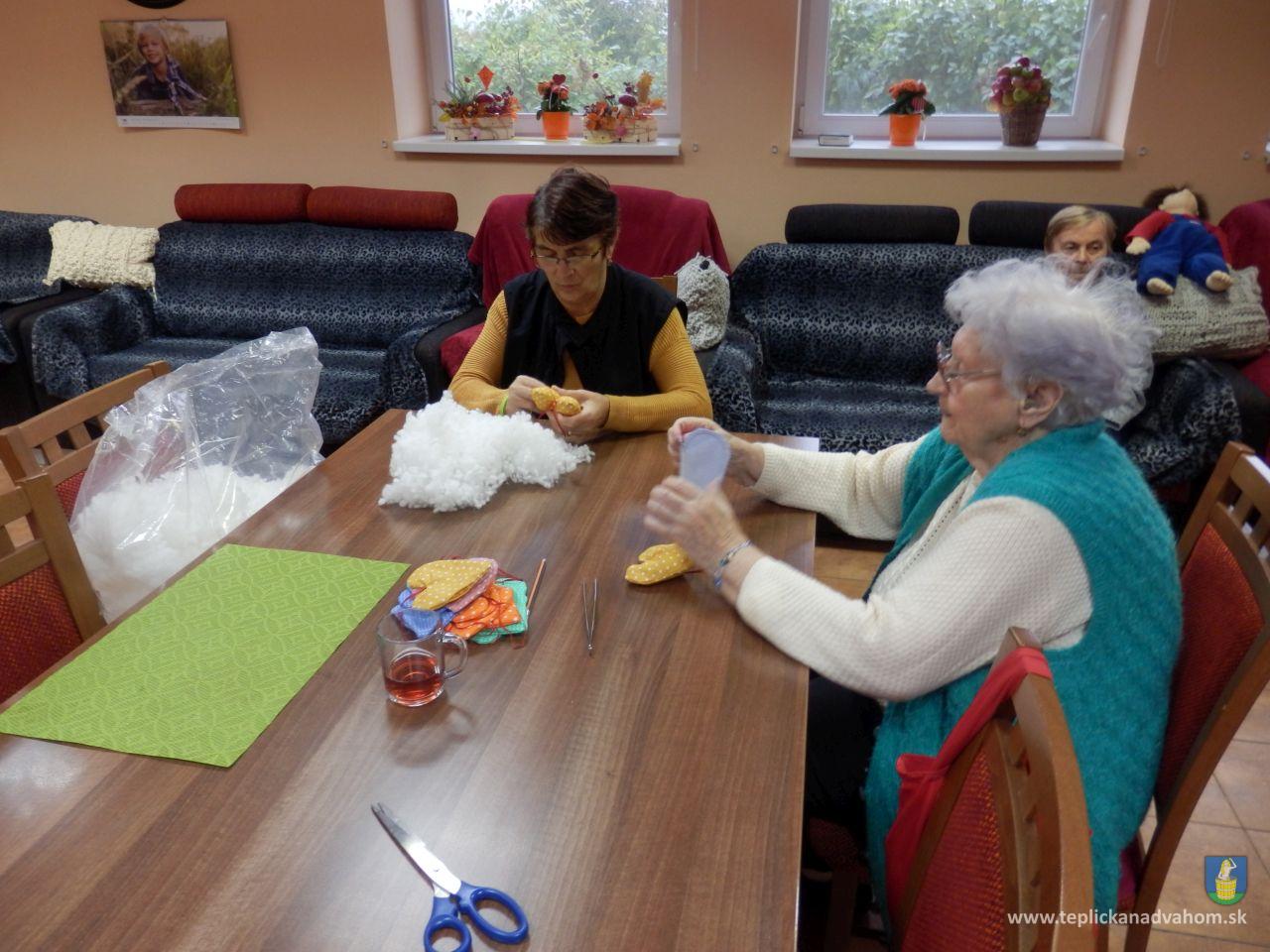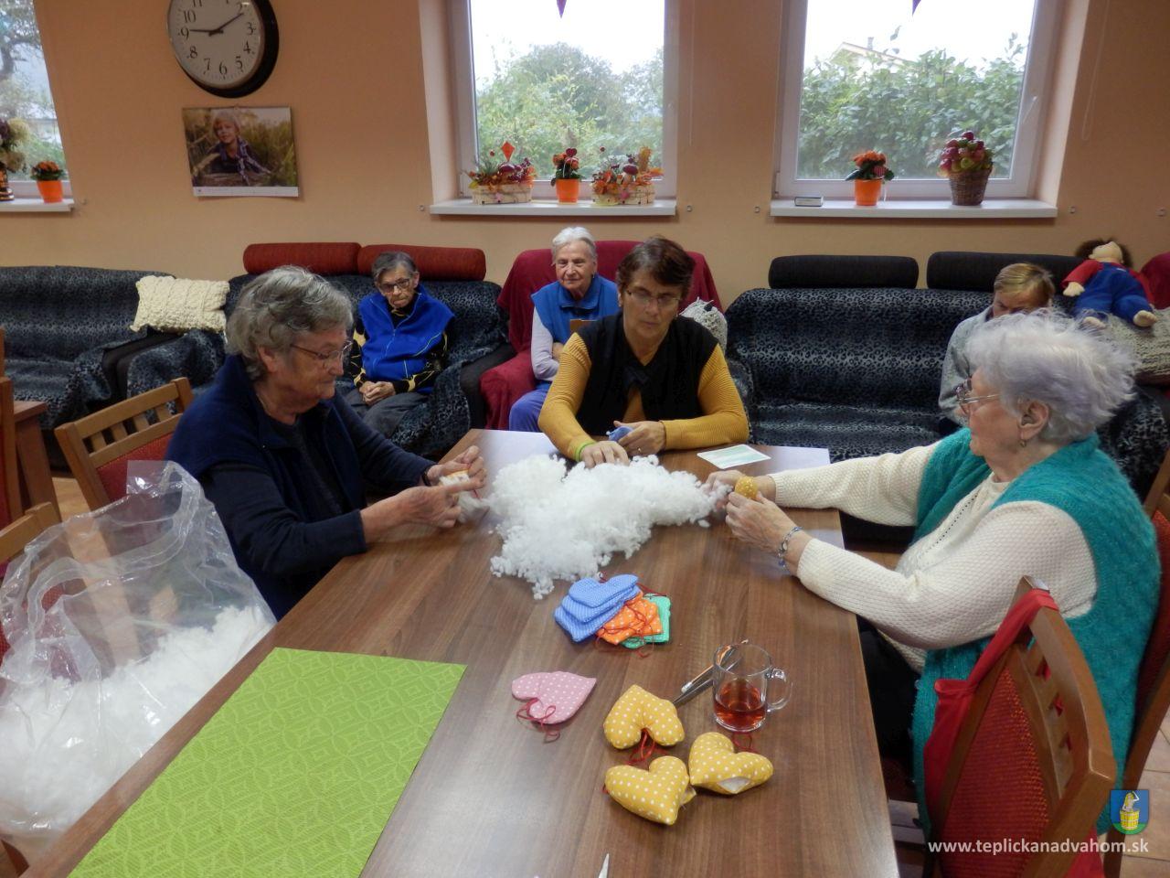 Vyrábame srdiečka pre detičky na uvítanie do života. Ergoterapeutka Zuzka nám predšije na stroji a potom ich naplníme a zašijeme. Do každého látkového srdiečka vkladáme aj kúsok svojho. Je to symbolika - Mladé sa snúbi so starým. A koľko radosti z toho klienti majú. Za dobrú prácu dostaneme aj sladkú odmenu. A je nám dobre. Pochmúrna nálada nie je naša kamarátka.
