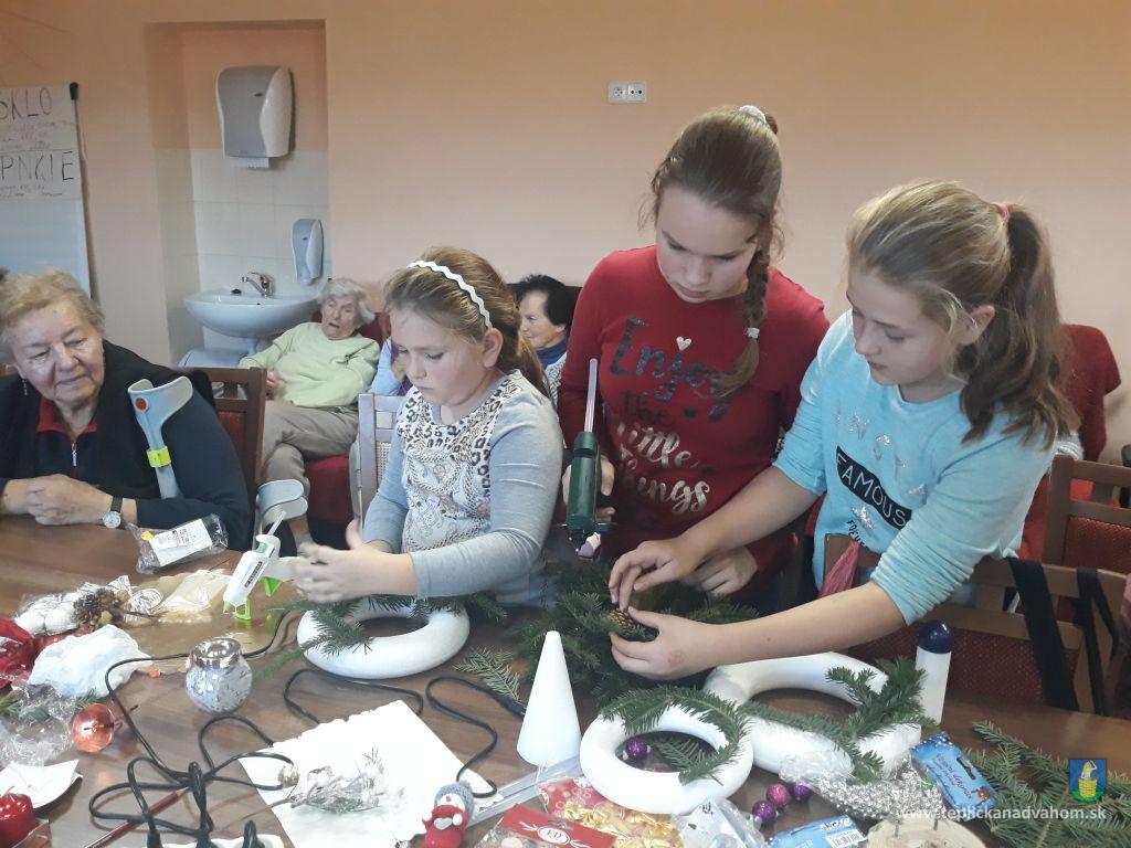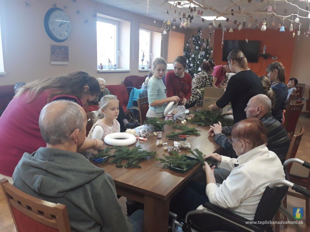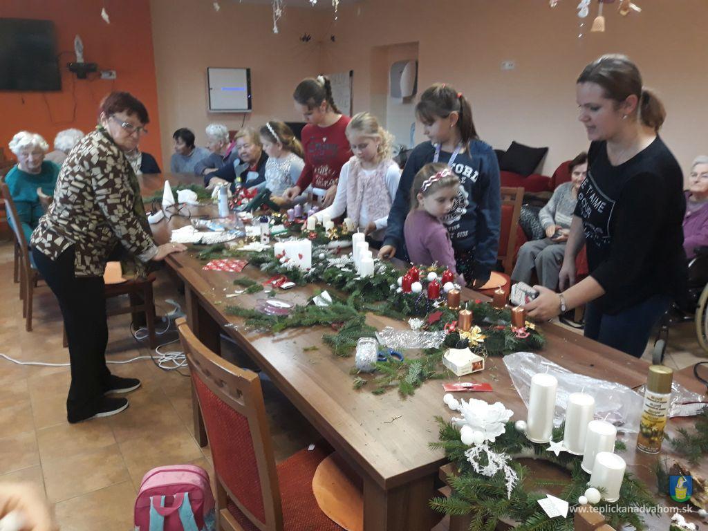 Pred 2 týždňami piekli spolu so starkými z nášho zariadenia medovníčky. Dnes prišli medzi nás, aby vyrobili adventné vence. Vo vzduchu bolo cítiť krásnu vôňu jedličky podfarbenú tónmi kolied. Žiara v očiach detí i obyvateľov hovorí za všetko....
