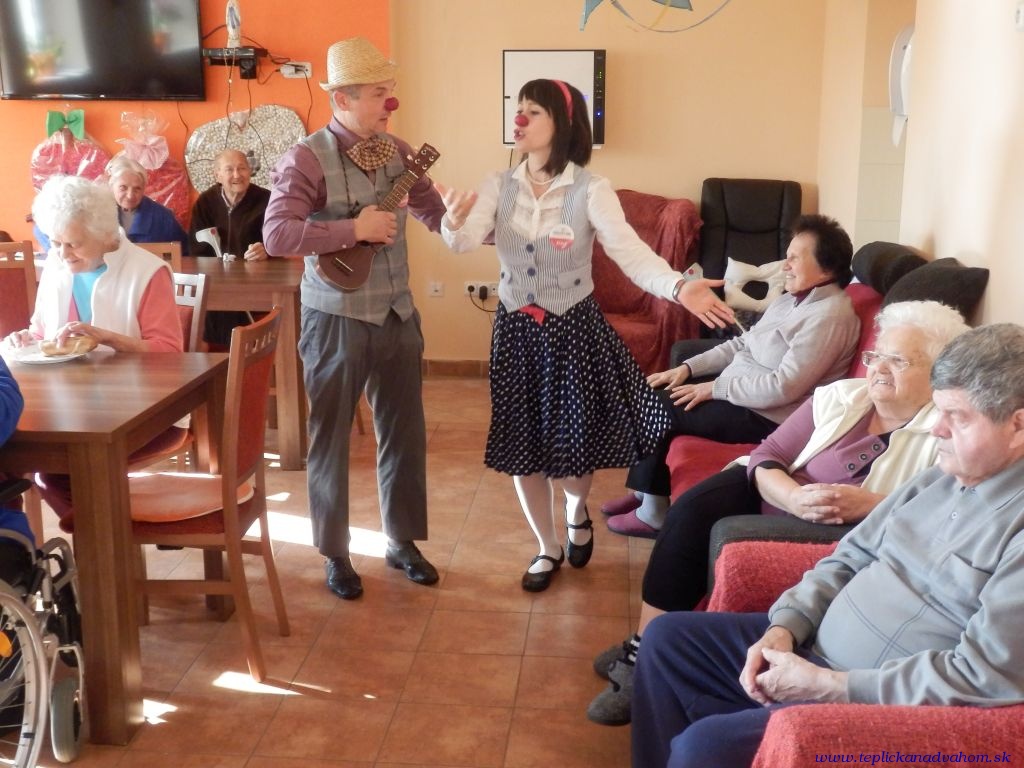 Dnes medzi nás zavítali Miška Pastorková - Klára a Demko Ján alias Silvester Bobuľa z červeného nosa. Prišli k nám už po druhýkrát, aby našich starkých pobavili a rozosmiali. A darilo sa. Starkí sa chytali na každé slovo, zaspievali si, zakrepčili.