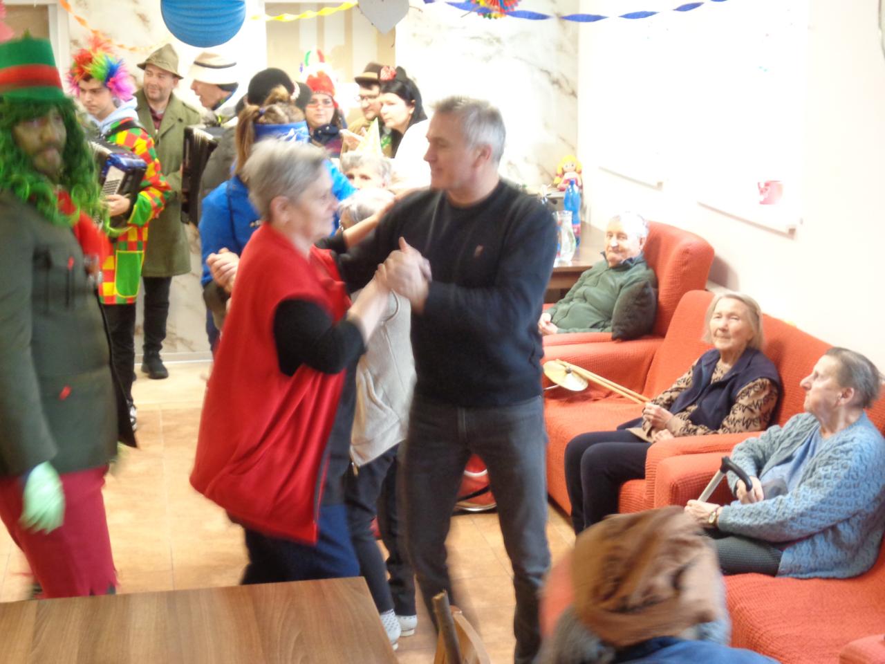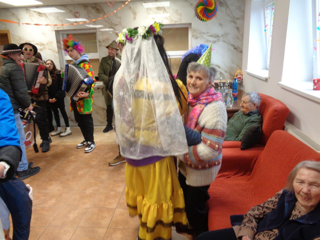 Spoločenská miestnosť sa prememnila na malú tanečnú sálu. Hudba je srdcom každých fašiangov. Znejú známe ľudové piesne, pri ktorých si zatancovali aj naši starkí. Chceme sa poďakovať všetkých. ktorí sa podieľali na organizácií a fašiangovom sprievode. A ako každý rok , tak aj tento prišli roztancovať a rozospievať naše zariadenie. Veľmi pekne ďakujeme, že na nás nezabúdate.