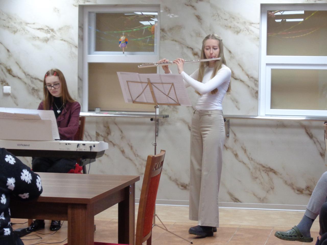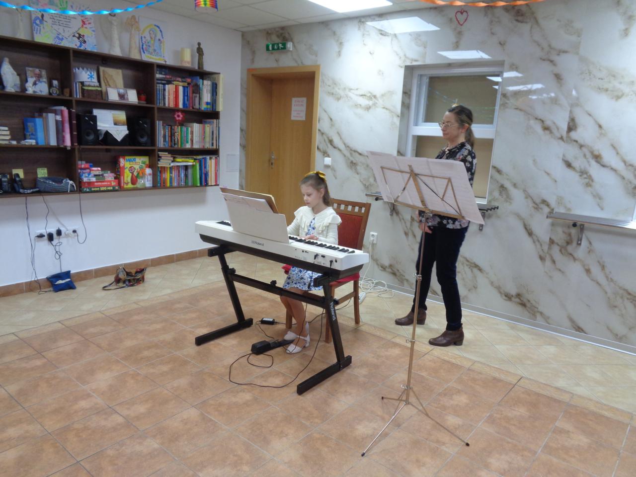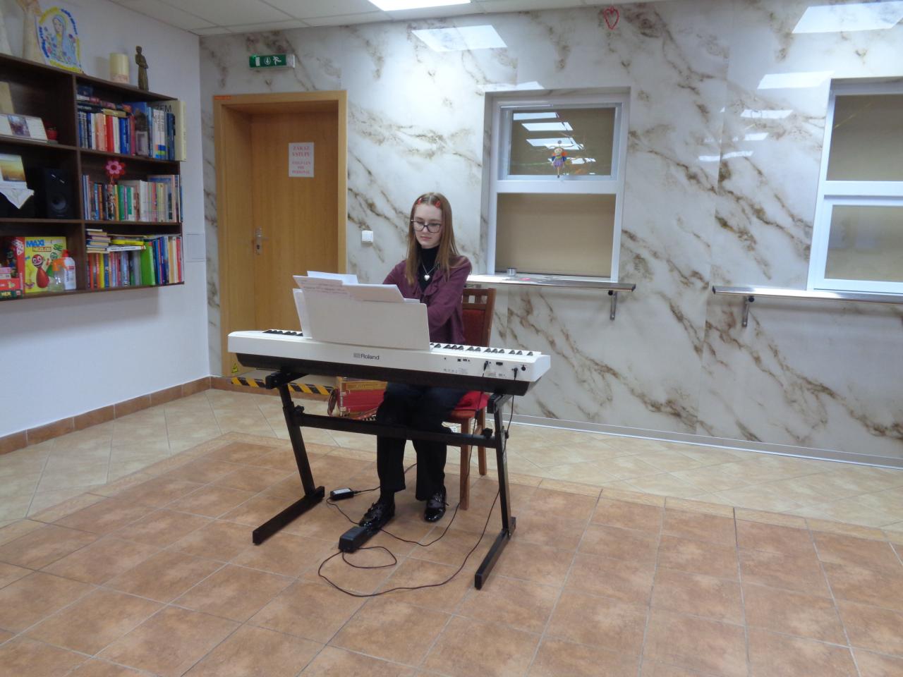 Najmladšia účinkujúca bola osemročná Karolínka, potom vystúpili študentky Lujza a Betka. Záver koncertu nám spríjemnil Matúš, ktorý zahral ľudové piesne aj na želanie na heligónke. Ďakujeme za záujem a tešíme sa na ďalšiu návštevu.