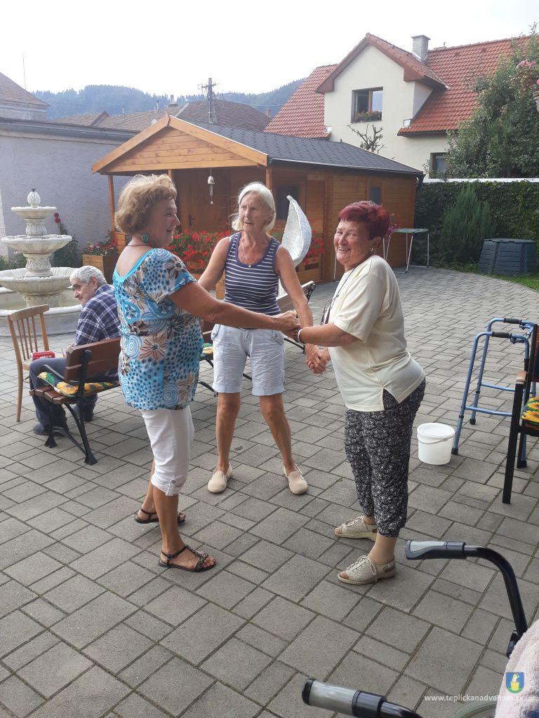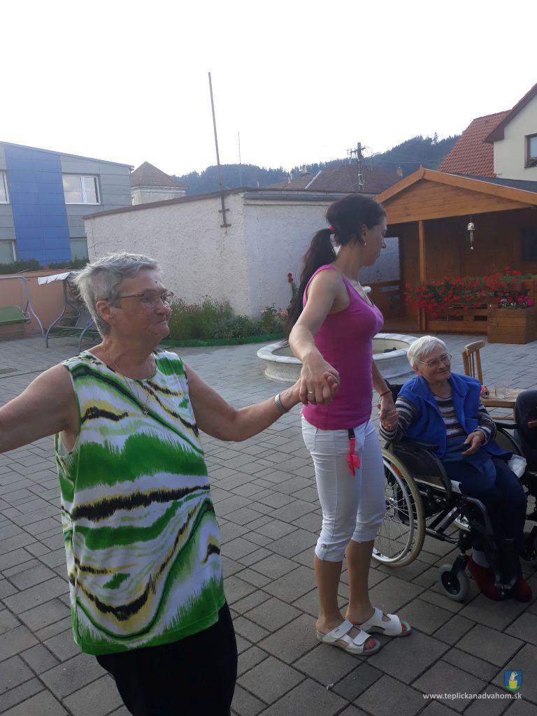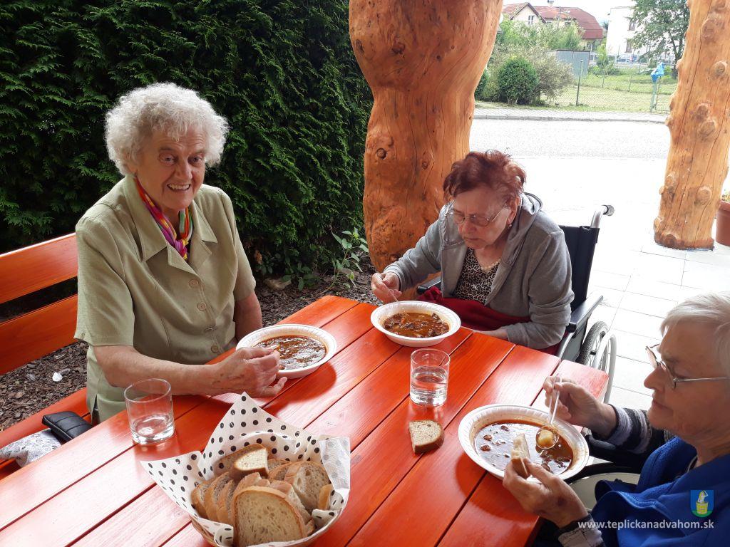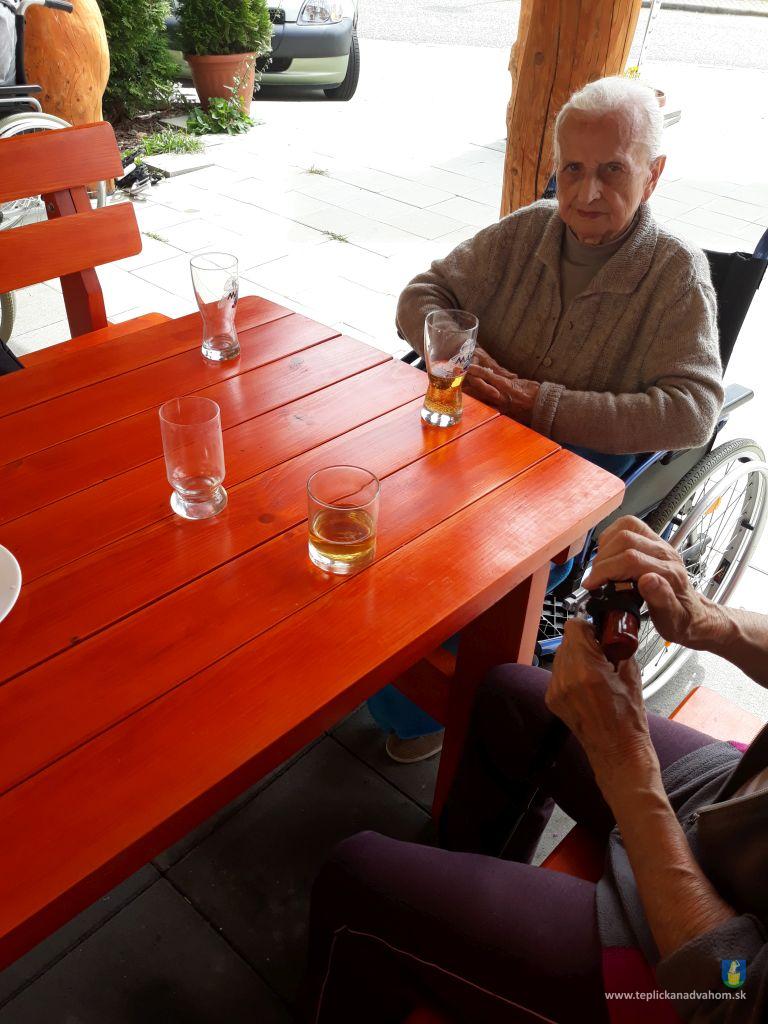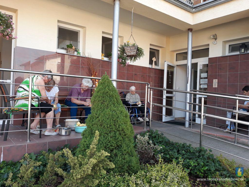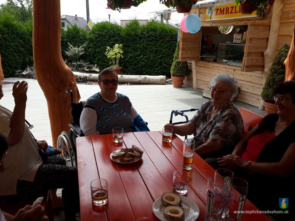 Dlhú cestu z nášho domova sme prešli pešo a tých, čo im nohy neslúžia, sme odviezli na vozíkoch. To bolo smiechu. Po príchode do areálu pri zmrzline sme sa posilnili kávou, osladili si život koláčikom a zábava pokračovala. Na obed nám Katka navarila guláš, o ktorom sa nám ešte pár dni snívalo. A ako bonus sme ešte dostali vytúžené pivo. Boli sme tak unavení, že cieľ bola posteľ v DPŽB, ale program bol iný. Vyfasovali sme škrobačky a úloha bola jasná. Oškrabať 15kg zemiakov, očistiť cibuľu, cesnak a začala sa podlisniková párty. Do práce nás prišli povzbudiť Tonko a Janko Zvarikovci s pomocníkmi harmonikou a ozembuchom. Myslíte, že vidina postele nás zlomila? Palice, chodítka išli do kúta a naše opotrebované nôžky sa roztancovali. A k tomu pekné piesne....