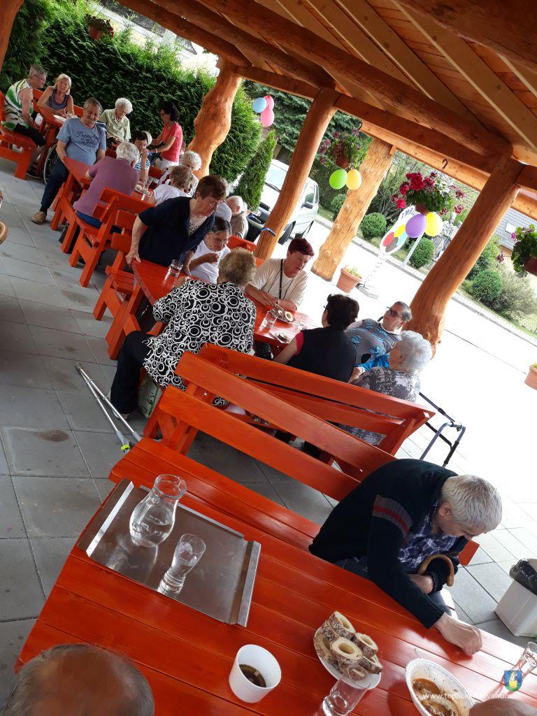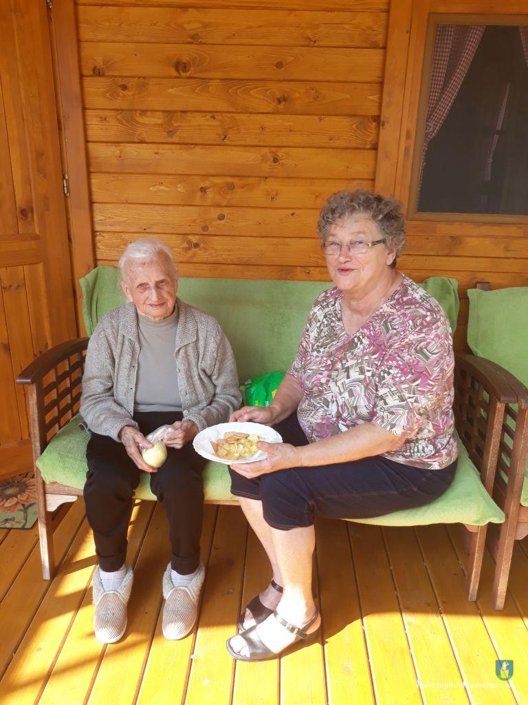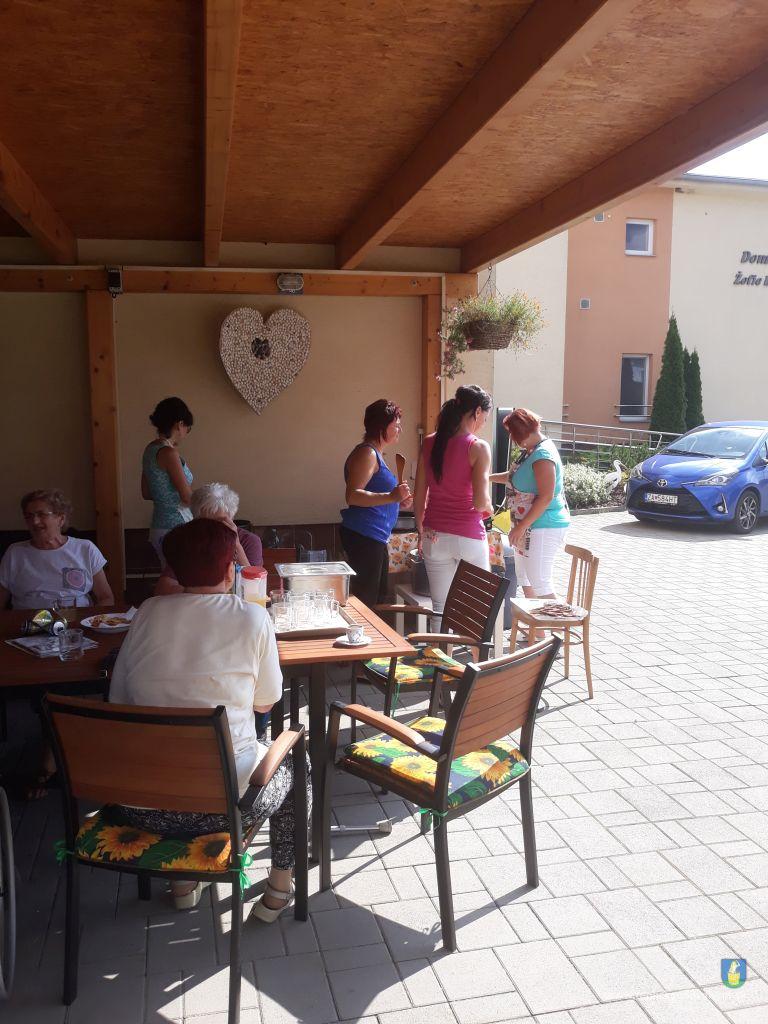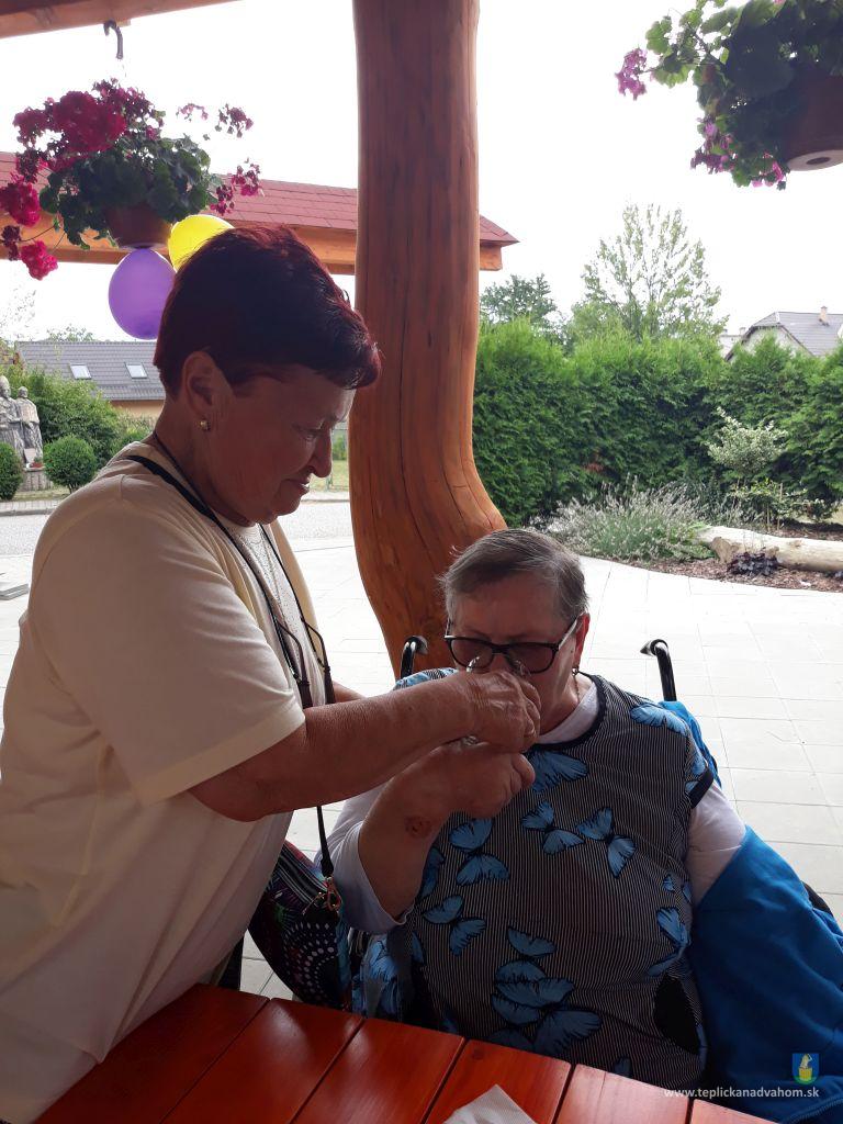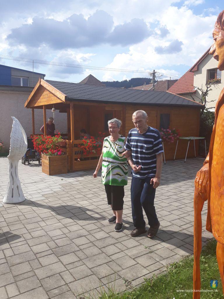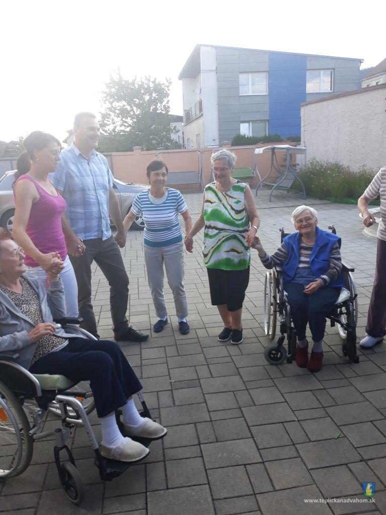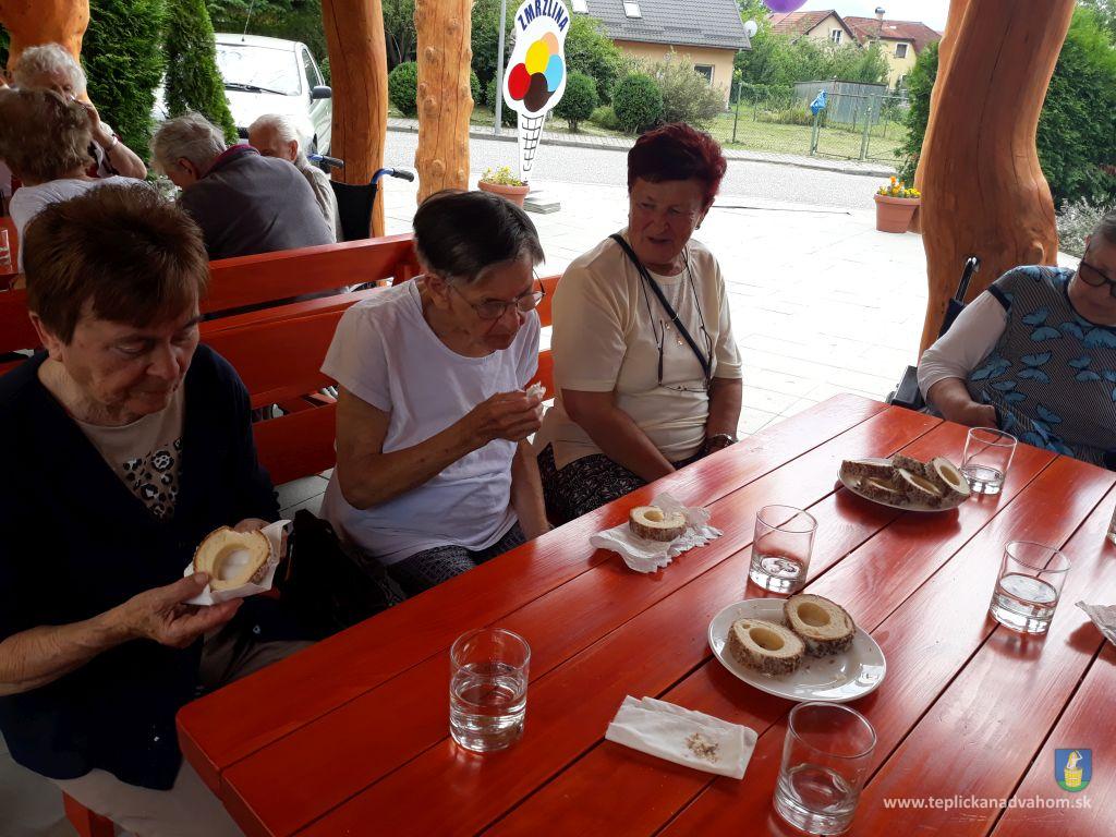 Dlhú cestu z nášho domova sme prešli pešo a tých, čo im nohy neslúžia, sme odviezli na vozíkoch. To bolo smiechu. Po príchode do areálu pri zmrzline sme sa posilnili kávou, osladili si život koláčikom a zábava pokračovala. Na obed nám Katka navarila guláš, o ktorom sa nám ešte pár dni snívalo. A ako bonus sme ešte dostali vytúžené pivo. Boli sme tak unavení, že cieľ bola posteľ v DPŽB, ale program bol iný. Vyfasovali sme škrobačky a úloha bola jasná. Oškrabať 15kg zemiakov, očistiť cibuľu, cesnak a začala sa podlisniková párty. Do práce nás prišli povzbudiť Tonko a Janko Zvarikovci s pomocníkmi harmonikou a ozembuchom. Myslíte, že vidina postele nás zlomila? Palice, chodítka išli do kúta a naše opotrebované nôžky sa roztancovali. A k tomu pekné piesne....