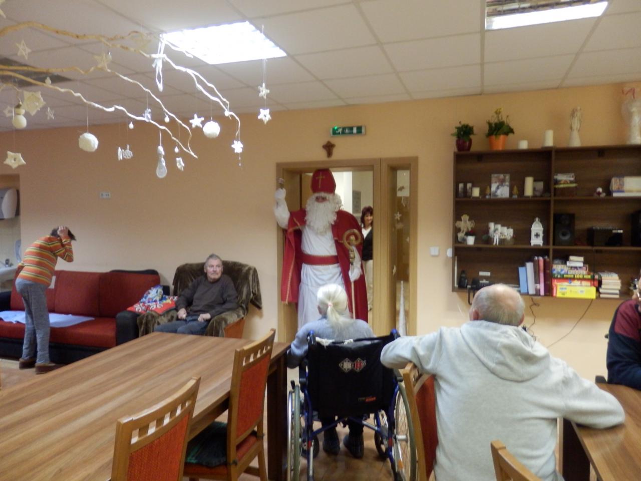 A keď začal padať súmrak, zavítal medzi nás ozajstný Mikuláš. Ospravedlnil sa, že mešká, lebo ho zdržali veselo naladení Terchovci. To sa starkým veľmi páčilo. Smiechu a radosti nebolo konca kraja. Naši obyvatelia sa chceli za darčeky aspoň pomodliť, ale uponáhľaný Mikuláš povedal, že nemá ani na modlitbu čas. Bolo to veľmi dojímavé a milé.