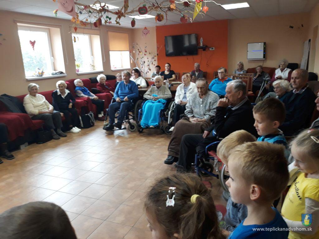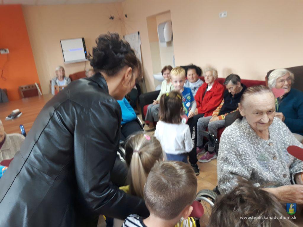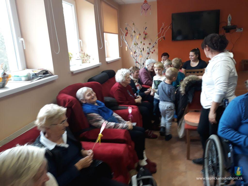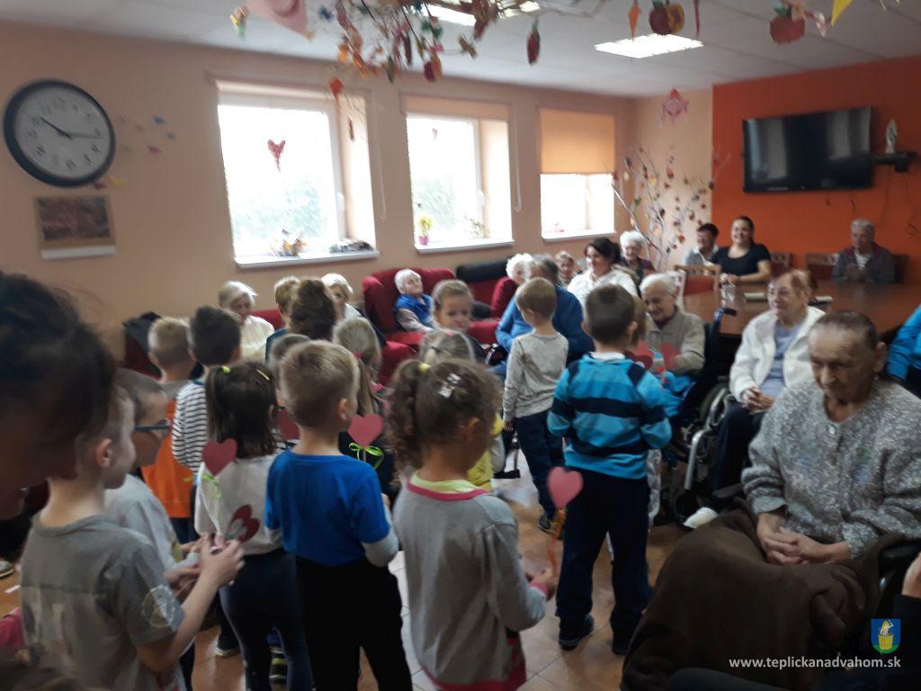 Dnes, v utorok nás prišli pozdraviť naši najmenší z MŠ Teplička nad Váhom spolu s p. učiteľkou, aby nám zaspievali a zarecitovali. Detičky boli úžasné, starkí im nachystali malú odmenu, maľované kamienky a sladkosť.