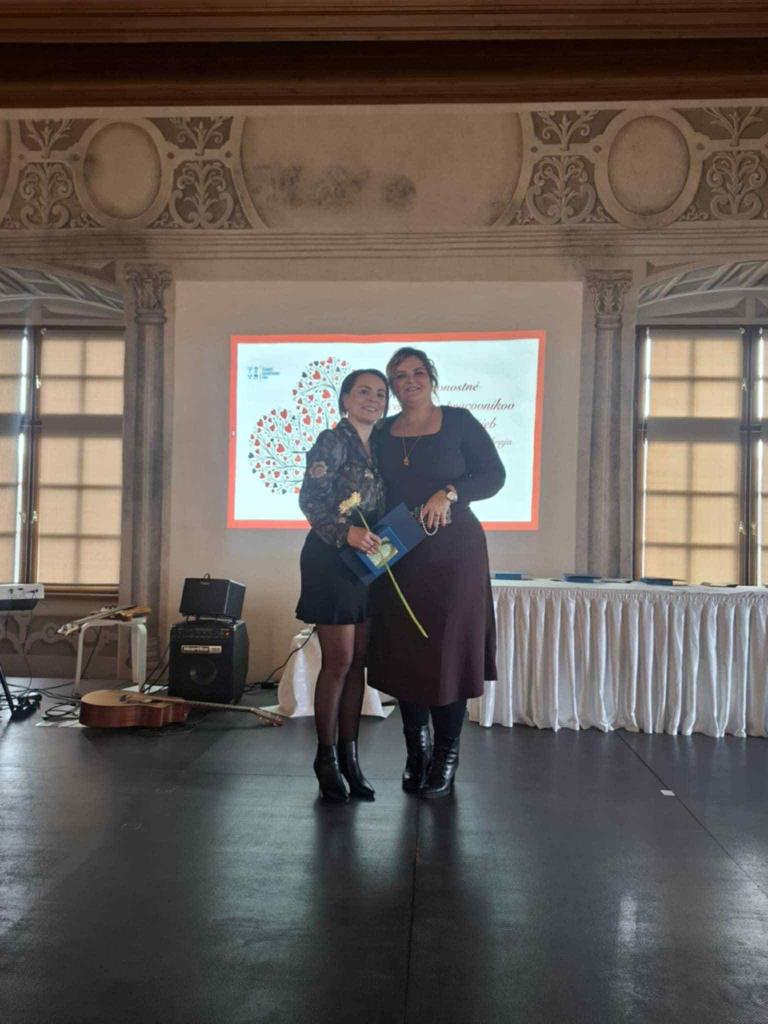 Odovzdávania cien sa zúčastnila vedúca zariadenia Mgr. Martina Dodeková a ocenená p. Monika Šugarová.