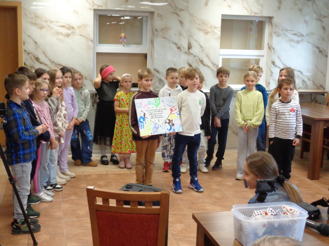 Detičky odbarovali starkých ručne vyrobenými darčekmi aj vyrobeným obrazom na plátne, ktorý bude zdobiť naše zariadenie. Veľmi pekne ďakujeme a tešíme sa na ďalšiu návštevu.