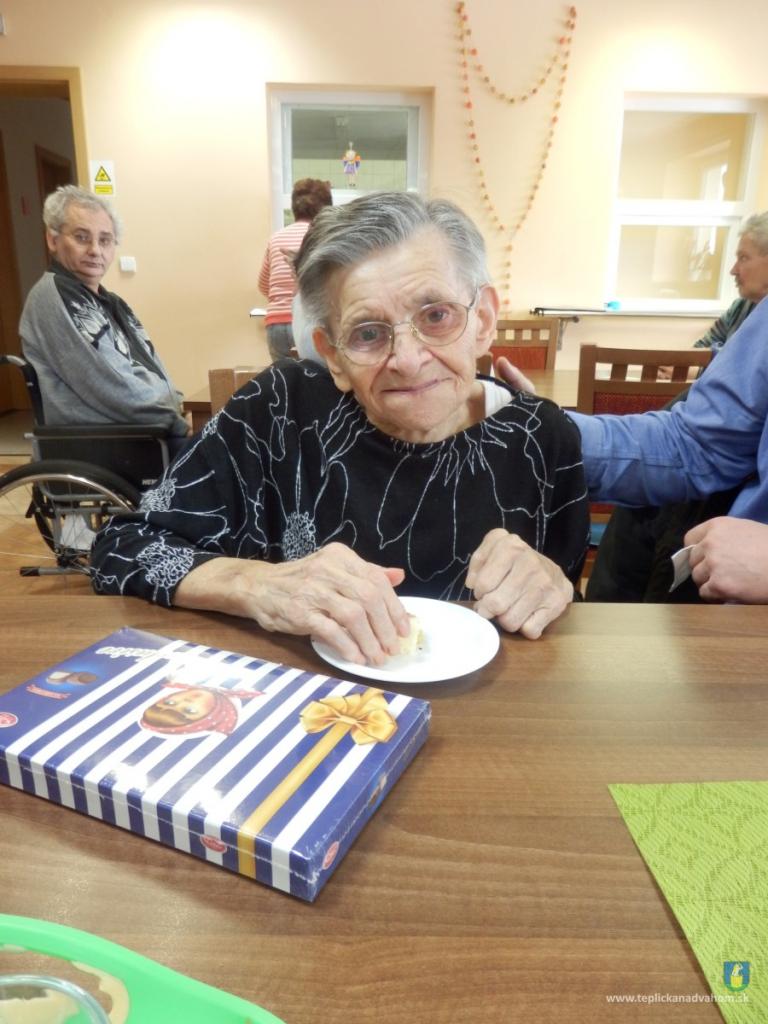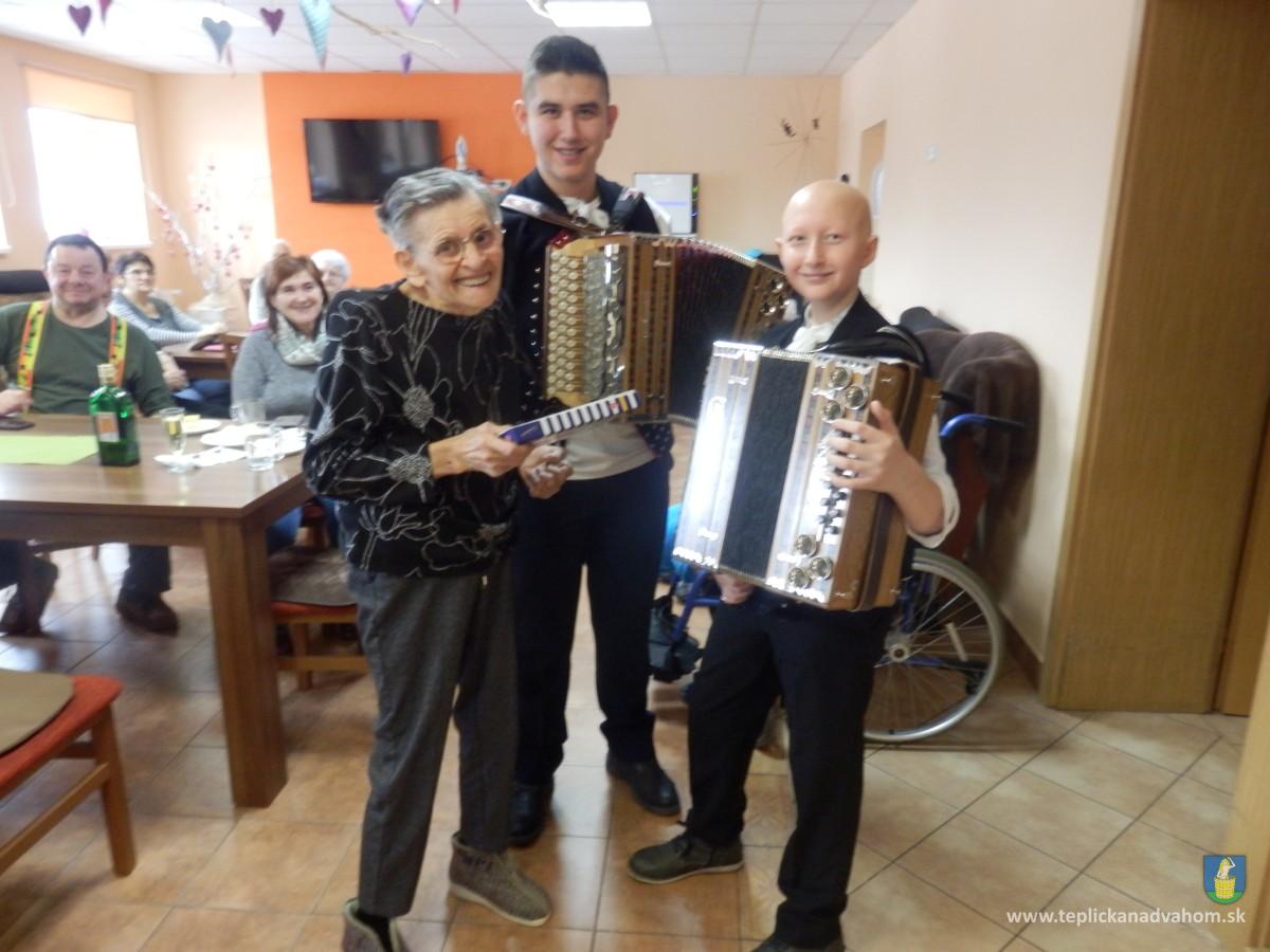 A že roky sú len čísla, sa podarilo aj na jej oslave. Veselá, usmiatá sa tešila z mladých heligonkárov, ktorí jej prišli zahrať a zaspievať obľúbené piesne. Synovia pani Pupišovej priniesli občerstvenie a o dobrú náladu nebolo núdze. Dá sa vôbec u nás v Domove pokoja Žofie Bosniakovej vôbec postiť?
