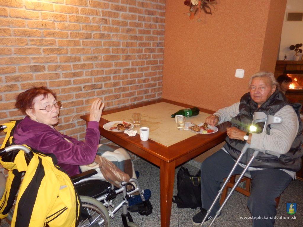 A keďže máme v našom zariadení hneď dve, pani Žofku Kuchárovú a opatrovateľku Žofku Podhorskú, rozhodli sme sa s klientmi, že si „povyrazíme“. Vybrali sme sa do našej milovanej Vrátnej doliny. Slniečko sa síce schovalo, výťah nepremával a aj napriek dohode chceli od nás „nekresťanské“ peniaze za mimoriadny vývoz na Chleb. Nás to neodradilo a chatu sme si užili. Ugrilovali sme si kuracie stehná, slaninku,zajedli čerstvým chlebíkom , zeleninkou a plný sily sme si zatancovali i zaspievali. Kúrili sme si v krbe, potešili sa pivkom, tí zdatnejší klienti zvládli aj Metaxu. Prežili sme krásny deň. Ďakujeme všetkým, ktorí nám pomohli prežiť nezabudnuteľný deň plný radosti a smiechu.