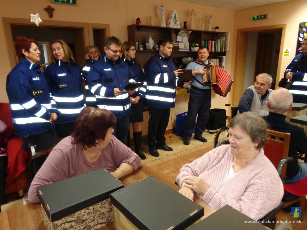 Dnes (21.12.) na naše prekvapenie prišlo do nášho zariadenia hasičské auto a z neho vyskočili krásni, mladí požiarníci a požiarníčky a každý mal plné ruky balíčkov. Pán dekan z Hasičského zboru zo Žiliny prišiel so svojimi kolegami, aby nám priniešol "Ježiška". Tomu sa hovorí ZÁZRAK :-) Neveríte? Pozrite si naš fotografie.