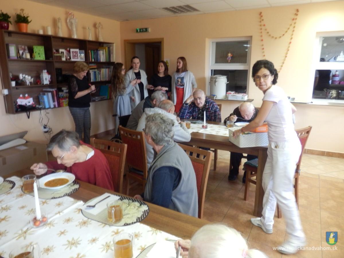 Naši obyvaelia si ho aj vychutnali. Už začiatkom decembra nám začali chodiť prvé pozdravy z celého sveta (zúčastnili sme sa projektu ,,Vianočná pošta". Potom prišli krabice od topánok plné darčekov pre všetkých našich strkých. Zapojili sme sa aj do projektu ,,Vianočný zázrak". Tesne pred Štedrým dňom začali prichádzať prvé darčeky. A boli to doslova dary od neznámych. Stacionárny bycikel, rebriny na cvičenie, rádia, predplatné časopisov, antidekubitné pomôcky, knihy, úžasné spoločenské hry, krížovky, špeciálne plachty pre imobilných, protišmykové podložky, náradie do záhrady a iné. Verili by ste, že úplne neznámi ľudia sú takí štedrí? Človečenstvo medzi ľuďmi nezaniklo. Ďakujeme známym i neznámym darcom za štedré dary.