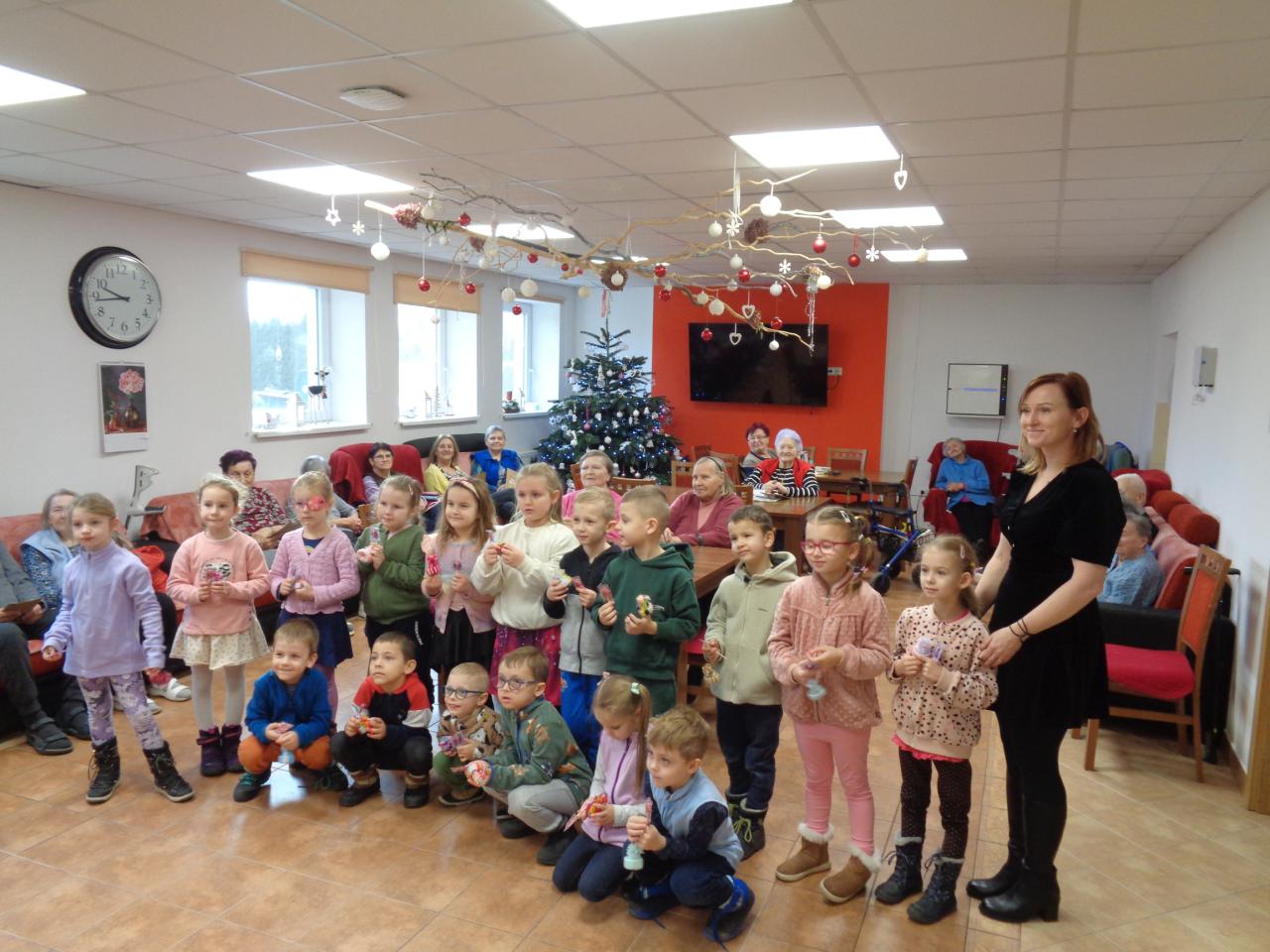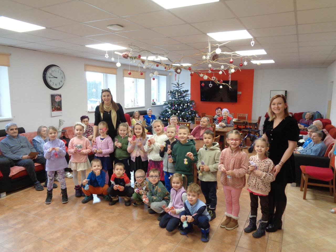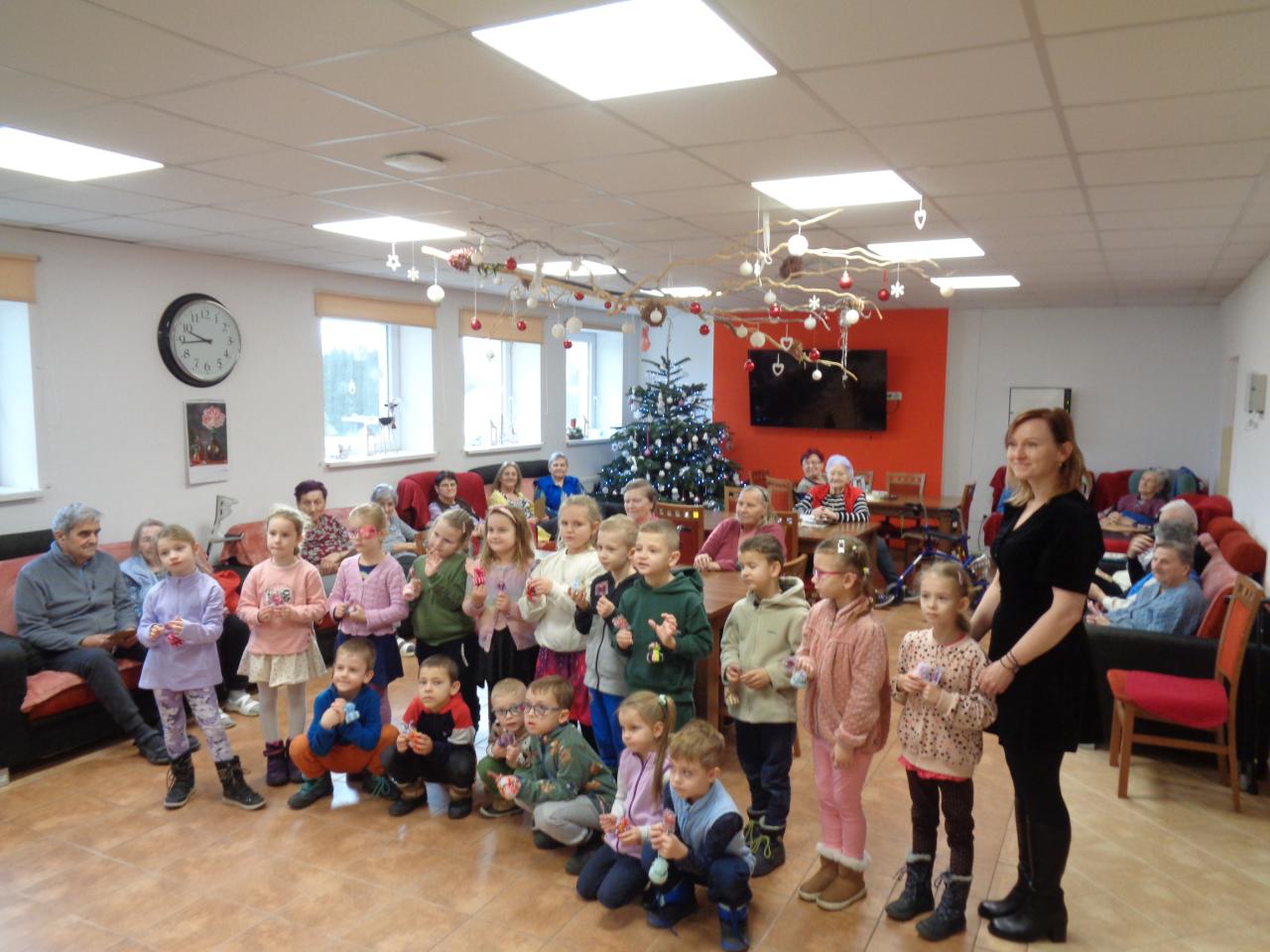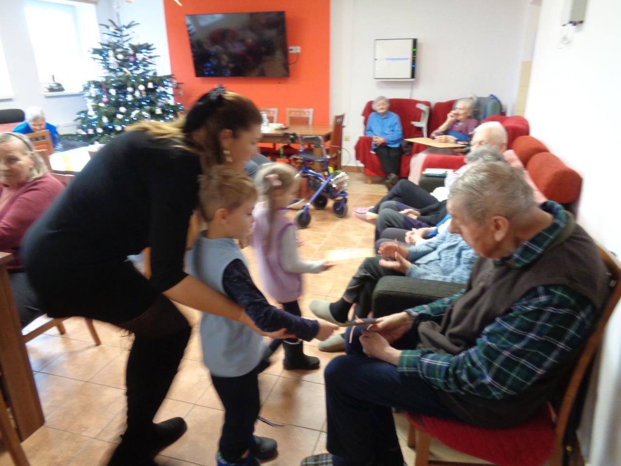 šikovné detičky si pre nás pripravili pásmo básničiek a pesničiek o vianociach. Vydarené predstavenie zakončili krátkym vinšom a odovzdali starkým svoje darčeky. My sme ich tiež na oplátku obdarovali malým darčekom vlastnej výroby. Tešíme sa na ďalšiu návštevu a ďakujeme za váš čas.