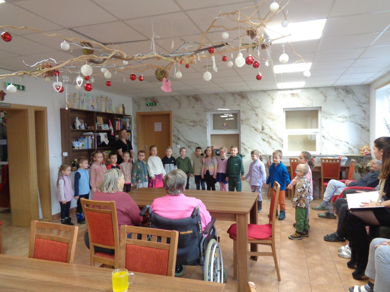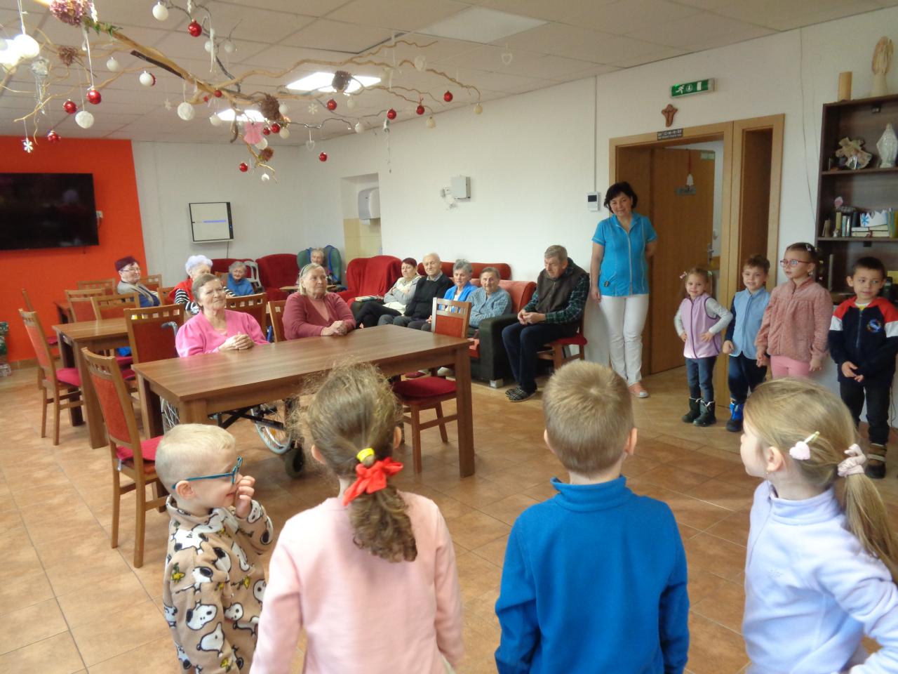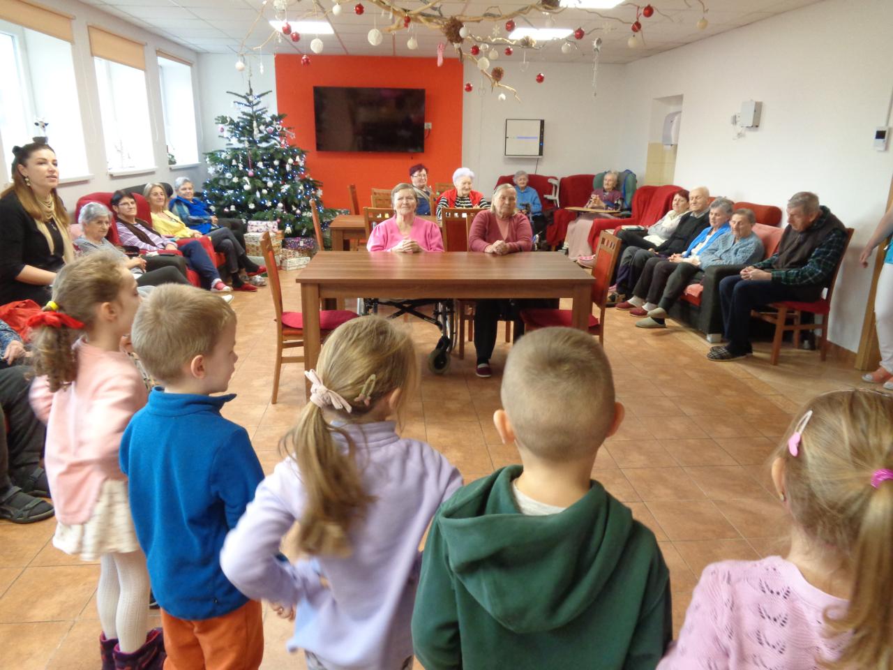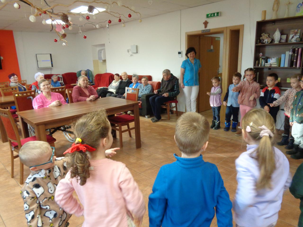 šikovné detičky si pre nás pripravili pásmo básničiek a pesničiek o vianociach. Vydarené predstavenie zakončili krátkym vinšom a odovzdali starkým svoje darčeky. My sme ich tiež na oplátku obdarovali malým darčekom vlastnej výroby. Tešíme sa na ďalšiu návštevu a ďakujeme za váš čas.