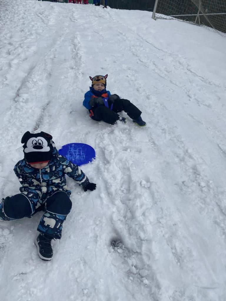 Keď pani Zima vystrela svoje ruky, premenila celú krajinu na ľadové kráľovstvo a zasypala kopce, lúky, lesy svojou bielou perinou, vytiahli deti svoje lopáre, sane či boby a vybehli s nimi na kopce. S radosťou vytvárali cestičky pomocou lopárov, na ktorých sedeli a s jasotom sa šmýkali dole brehom. Niektoré pristátia boli úsmevné a občas najedené deti snehom sa aj napriek primrznutým rukavičkám k zemi zdvihli a bojovali so snehom ako sa patrí. Nie jedna pani učiteľka dostala guľový zásah. Guľami sa nie len hádzalo, ale sa z nich stavali kamaráti Snehuliaci. Radosť v očiach a červené nošteky detí hovorili iba jedno, že tohtoročná zima sa nám ukázala v celej svojej kráse.