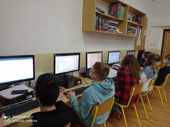Žiaci na hodinách vytvárali rôzne hry, ktoré sú zverejnené na web stránke školy a môžete sa zahrať aj vy. Žiaci ôsmeho ročníka objavili programovateľnú “hračku“ micro:bit. Je to programovateľný minipočítač, ktorý obsahuje displej, tlačidlá, senzory, reproduktor a rôzne iné doplnky. Odskúšali si naprogramovať digitálnu menovku, počítadlo ľudí a vysielačky.