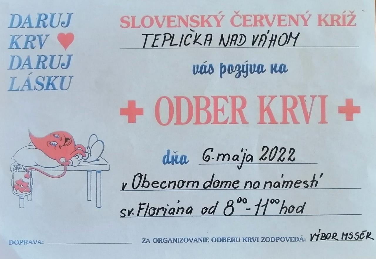 Pozvánka na májový Odber krvi